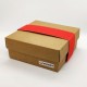 Medidas 12x12cm y 5cm de altura, con faja roja de cartón corrugado y viruta de madera en su interior