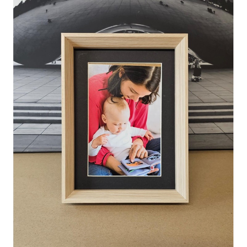Una foto 13x18 enmarcada en un hermoso portarretratos de madera clara Vgo. ¡Perfecto!