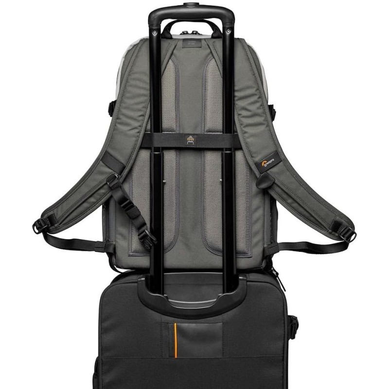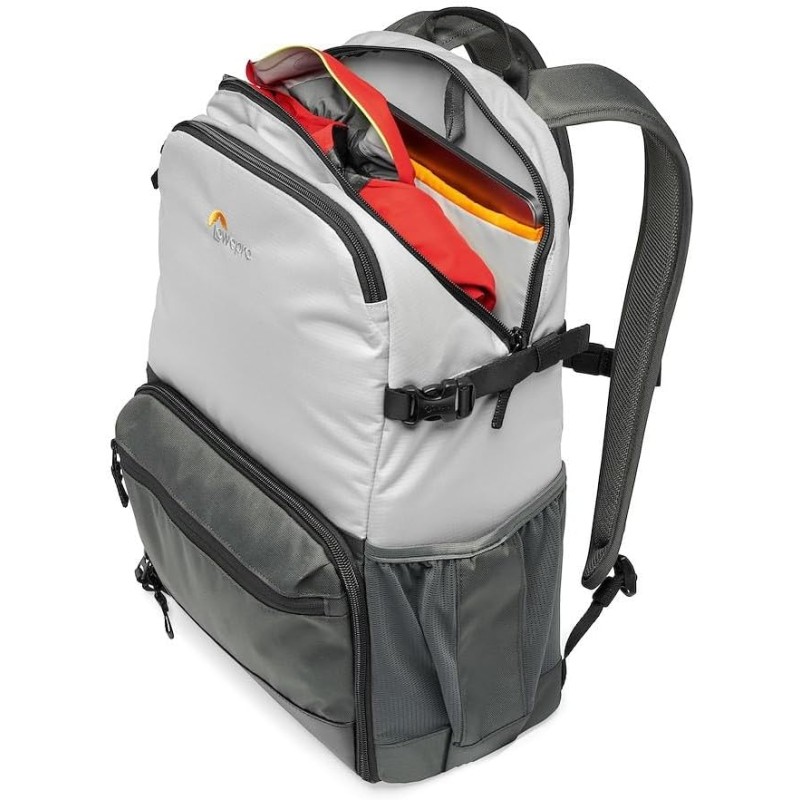 Esta mochila es compatible con DSLR y sin espejo + 1/2 lentes adicionales. Tiene división 50/50 para equipo personal y equipo de cámara, bolsillo interior acolchado para portátil hasta 15". Panel posterior de malla absorbente y correa de esternón.