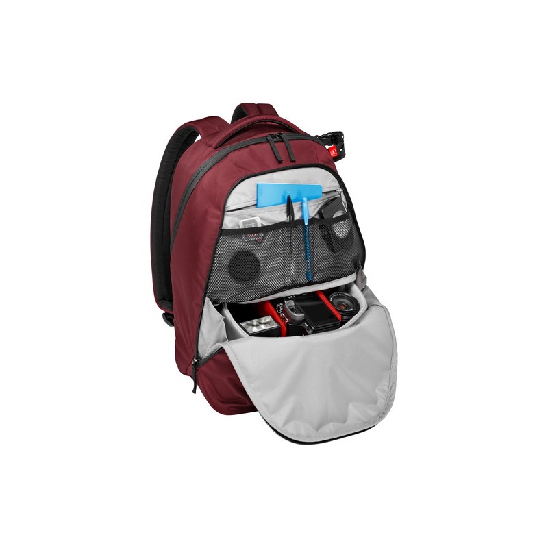 Cómoda mochila fotográfica que además ofrece un uso diario, el compartimento extraíble acolchado en la parte inferior está equipado con el Sistema de protección de Manfrotto, para llevar tu equipo de cámara DLSR con dos objetivos y accesorios