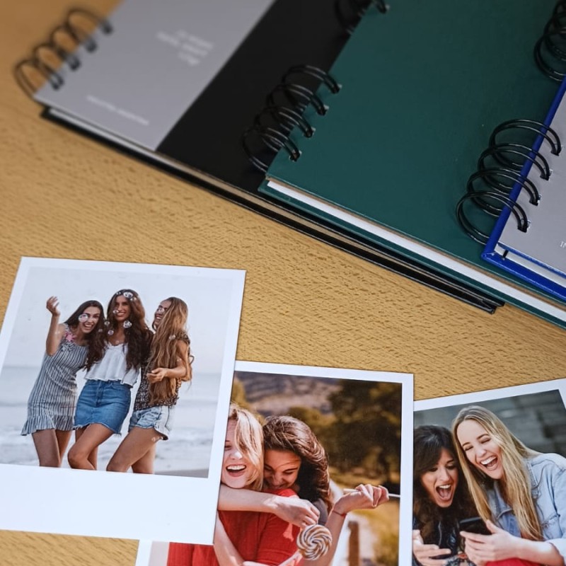 12 POLAROIDS + ALBUM ARTESANAL CON 25 HOJAS KRAFT 125G Y ANILLADO METÁLICO