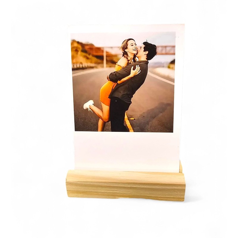 Foto formato Polaroid en doble faz, rígida con base de madera natural, en caja de regalo